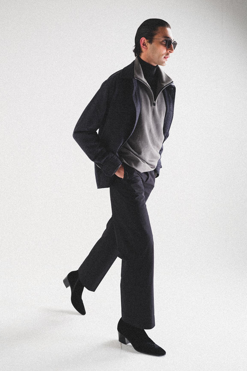 Rangoon grey fleece fabric Johnny zipper collar relaxed sweatshirt.